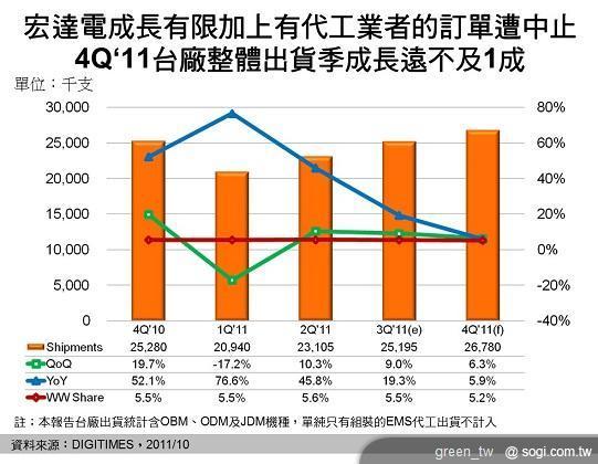 DIGITIMES Research:4Q'11 台廠手機整體出貨成長不及 1 成 智慧型手機市佔比逼近 7 成
