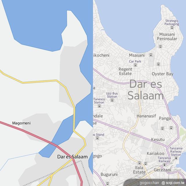 合作後,Flickr 中的地圖由 Nokia Maps 圖資取代,地圖右下方也會看到 Maps Image by Nokia。上圖左手面是之前的地圖,而右手面當然是 Nokia Maps,可以明顯看到兩者之間的分別。
