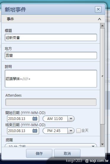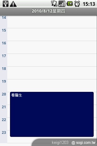 行事曆也是,只要到google的行事曆中做更動,手機連上網路後,Android就會自動與google同步,算是相當方便。