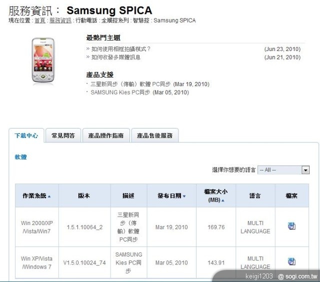 去官網下載電腦端的平台,會發現有兩種不同的平台可以下載,一開始笨笨的一定會下載第一個"三星新同步(傳輸)軟體 PC同步",可是下載安裝完成後,卻發現這個平台並不支援i5700...不知道官網是不是放爽的...