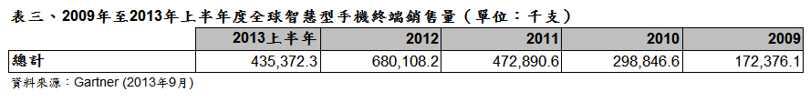手機市場將持續穩步成長,然而平均銷售價格(ASP)較高的智慧型手機,其商機將告終。市場的成長動能預期會來自於成熟市場的中階智慧型手機,以及新興市場的低階 Android 智慧型手機。