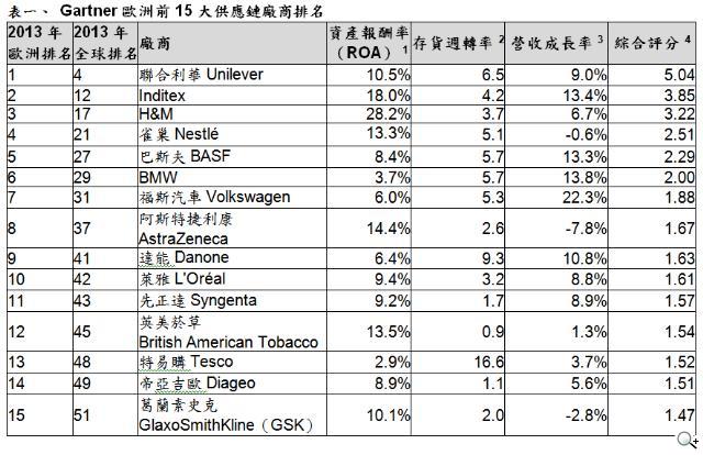 Gartner 公布 2013 年歐洲前 15 大供應鏈廠商排名