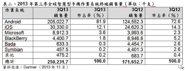 Gartner:2013 年第三季智慧型手機占整體手機銷售量達 55%
