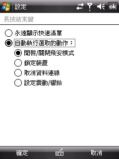 圖:HTC Cruise 還可以設定長按結束鍵的功能,