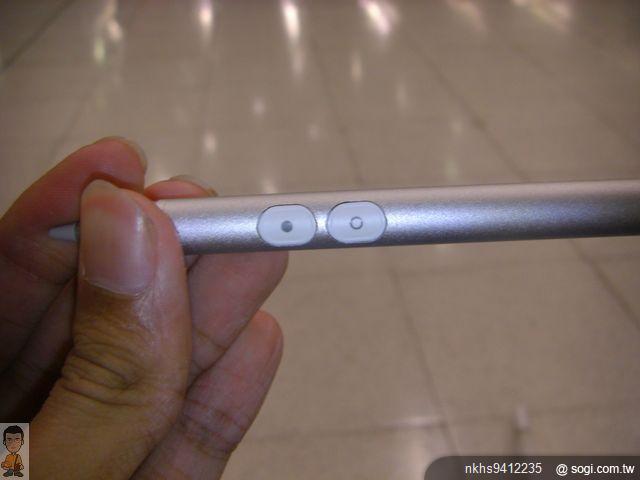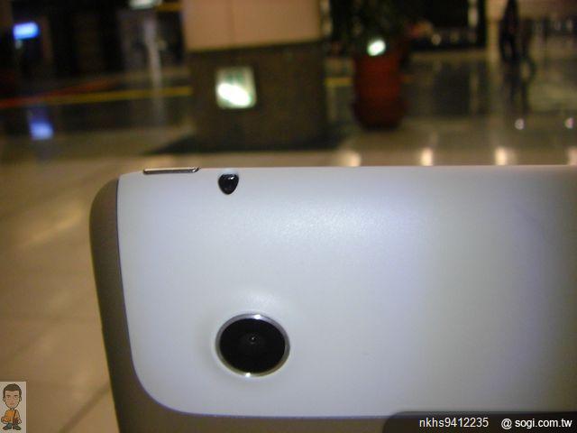 往上面一點,可以看到後方的500萬畫素鏡頭與耳機孔。↑