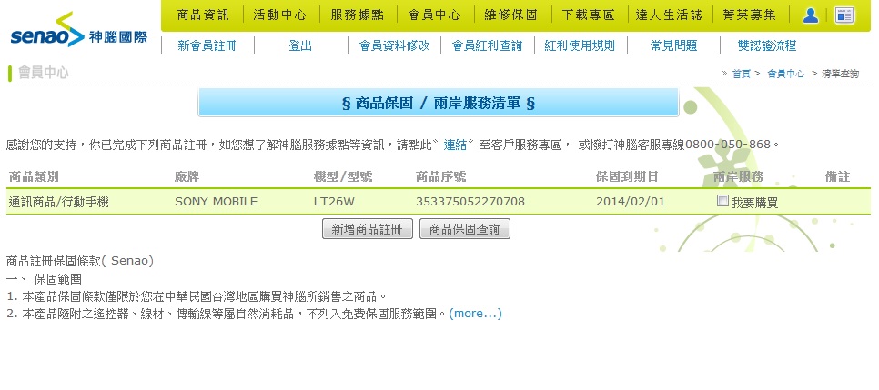 購買時就沒提供保固卡 但有上神腦網站註冊