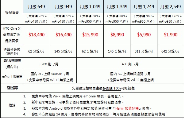 HTC 首款4核心智慧型手機ONE X,首先與中華電信搭配上市囉!