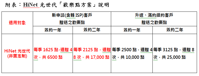 HiNet 光世代 老客戶續約升速 獨得歡樂點 25000 點