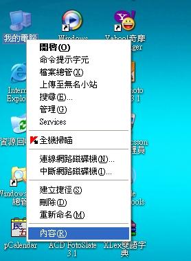 3.在"我的電腦"上按"右鍵"---------->內容(如圖)