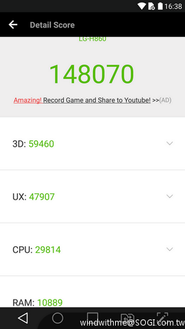 以上測試為Andriod 6.0版本,後來不論更新前後測試多少次都會閃退無法得到數據