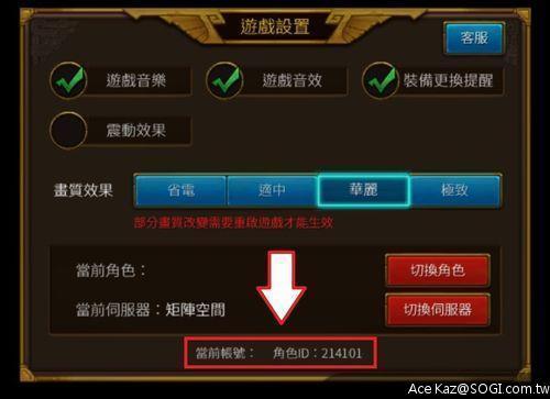 角色ID的查看方式,從設置進去,然後最下面就有顯示角色ID囉~