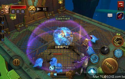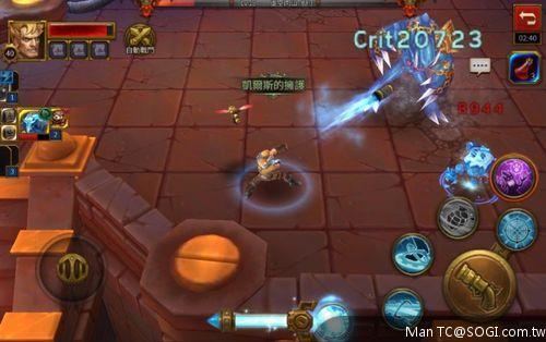 而砲塔的攻擊距離有點短,但是會暈眩敵人,因此建議可以繞著砲塔跑,再利用暈眩效果來牽制住對方,讓自己比較不容易被敵人靠近,這對於遠距是一個相當重要的概念。