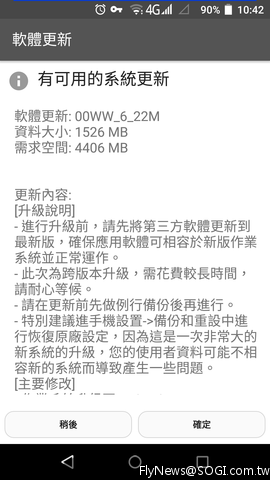 若沒有恢復原廠設定,ROM的剩餘空間也可能不夠...