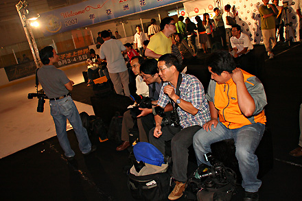 幾家媒體比小編更瘋星光幫,把主動單位原先設置好的座位推到最前排~(還有這樣喲!)果然拿相機的比較兇,根本不管廠商和後方其它家媒體的死活...