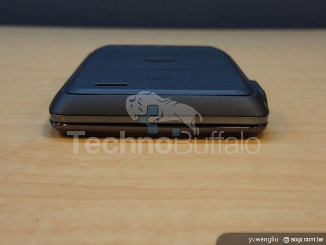 ▲MOTO DROID 4 機身頂部配有 3.5mm 耳機孔,以及電源 / 螢幕鎖。可以看到 MOTO DROID 4 上下蓋之間的接縫並非水平。(圖片來源:TechnoBuffalo)