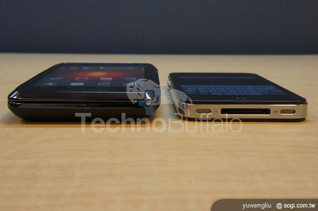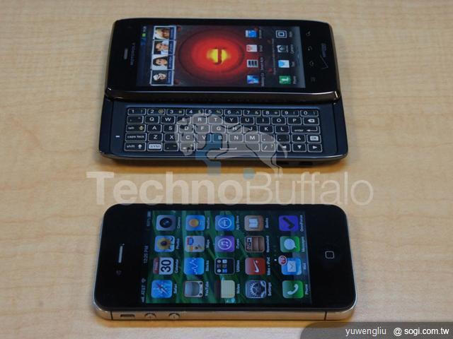 ▲Apple iPhone 4S 大約和 MOTO DROID 4 的鍵盤部分厚度相同,不過以側滑蓋 QWERTY 鍵盤手機來說,MOTO DROID 4 的體積控制已經很不錯。(圖片來源:TechnoBuffalo)