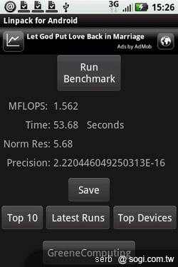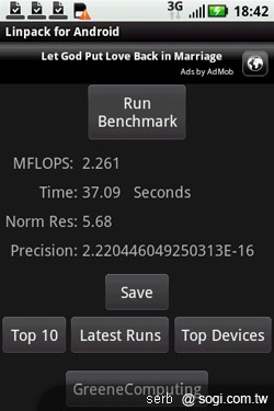 ▲Linpack 測試。(左為 MOTO QUENCH MB501 ;右為 MOTO BACKFLIP ME600)
