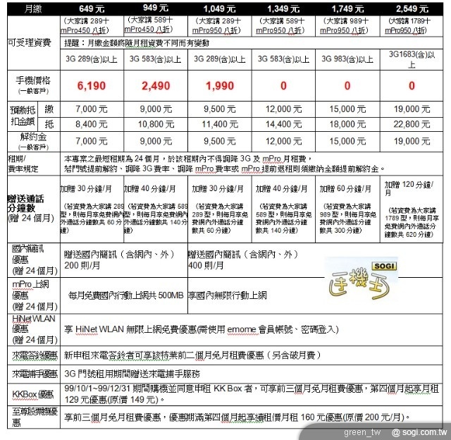 - 本方案加贈之網內外通話分鐘數、HiNet WLAN 免費上網、國內簡訊及 mPro 月租費 8 折,皆為於合約期間內有效(最短租期為 24 個月或 30 個月,視所搭配方案而定);加贈之簡訊通信費優惠僅限使用於行動電話客戶之間的簡訊互傳(透過網站傳送僅限於 emome 網站),不包加值服務簡訊(如:簡訊文學家、手機部落格...等)。