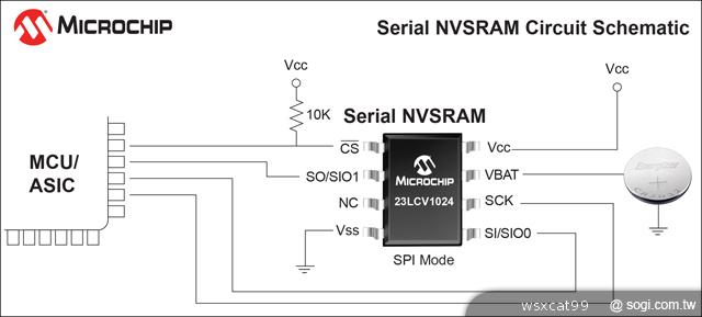 系列中的另外兩個成員——23LCV512和23LCV1024——通過電池備份為非揮發性、無限耐久性RAM提供了業界最具成本效益的方案。事實上,憑藉其40 Mbps的快速雙SPI(SDI)輸送量和低工作和休眠電流,這些串列NVSRAM元件可以在沒有高接腳數並行NVSRAM的前提下實現高速運行,功耗可媲美FRAM,而價格更為低廉。這將有利於電錶、黑盒子及其他資料記錄應用,這些應用需要無限耐用性或暫態一起寫入非揮發性儲存。