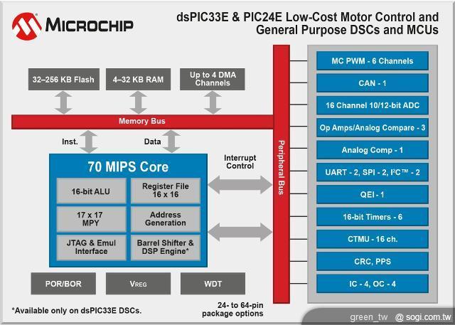 全新 dsPIC33E 和 PIC24E 元件有助於馬達控制設計人員利用那些具備創新技術和成本效益的 70 MIPS 元件,降低高性能馬達控制系統的成本。整合運算放大器等全新晶片內建週邊可減少電路板空間和外部元件需求。這些運算放大器可以用於需要信號放大的各種感測應用場合。利用豐富的功能集和低成本特性,dsPIC33E 和 PIC24E 元件可用於感測器、通訊、汽車、工業和新興應用。