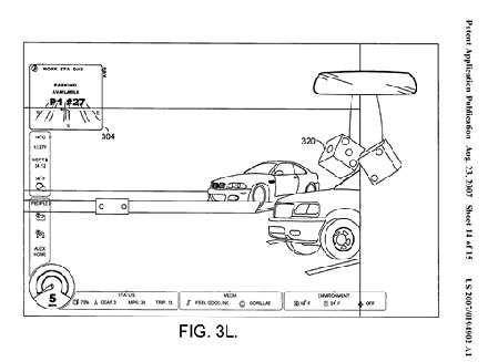 在其最近發表的專利申請中,說明著這個位於汽車儀表板上的動態介面會隨著輸入的狀況不同,而顯示不同的畫面,而這些「狀況」的來源,可能是你手機或 PDA 或其他隨身電子產品中所儲存的資訊,也可能是你開車時所遇到的狀況,或者是 GPS 所傳遞出來的訊息(像是附近的店家資料),那跟骰子有啥關係呢?