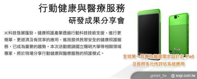 行動健康與醫療服務方案的完整研發內容以及成果,即日起將在台北陽明大學(09/15)、台南永康奇美醫院(09/16)、台中榮民總醫院(09/23)、花蓮慈濟技術學院(09/29)以及台東馬偕醫院(09/30)進行全省巡迴分享會。會中將邀請國立陽明大學等相關領域專家,現場分享行動健康與醫療服務的照護模式。歡迎業界先進共襄盛舉。