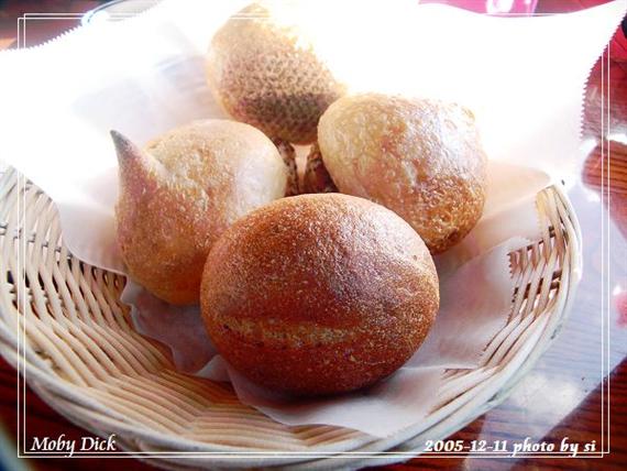 吃海鮮囉! 對於海鮮的愛好者來說可是一大福音啦! 位於美國聖塔芭芭拉海邊的 Moby Dick 是海鮮老饕一定要去之處 第一道麵包 麵包居然有四種到底那一種好吃 反正都每樣都試試..........恕刪