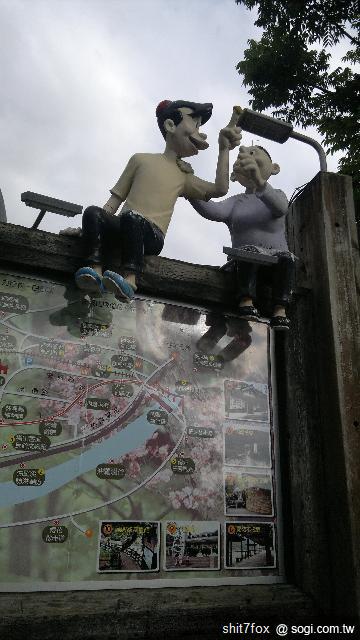 內灣老街的標誌物~化妝室前的兩位小孩子
