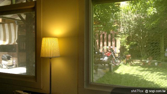 這室裡面~因為木質地板~很乾脆的我坐好後~就把鞋子襪子給脫了~外面太熱~散熱放鬆一下~!!