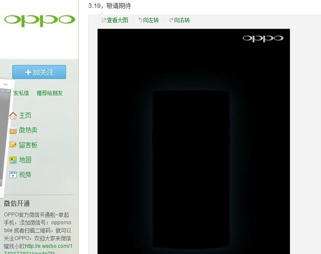 ▲ 3 月 15 日,OPPO 官方新浪微博刊出一張表面覆蓋黑色光芒且外型框架與 OPPO Find 5 一致的智慧型手機海報,並提到:3.19,敬請期待。因此媒體普遍猜測 3 月 19 日是黑色版 OPPO Find 5 的開售日期。(圖片來源:OPPO 官方新浪微博)