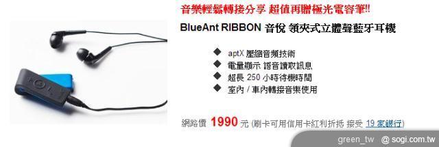 BlueAnt 執行總裁 Taisen Maddern 表示:「“Ribbon”擁有扭彎夾扣獨特設計能輕易固定於上衣,且對於那些因為 iPhone 5 插頭改變而面臨無法繼續使用原有的手機插座揚聲器用戶而言,我們相信這款產品將會提供顯著的解決方案。」