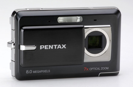 Pentax 推出兩款數位相機,Z10 (上圖)搭載 800 萬像素 CCD,ISO 值 2100、7 倍光學變焦以及內建 52 MB 記憶體。另一款 S10(下圖) 搭載千萬像素 CCD、3 倍光學變焦、內建 22MB 記憶體、能拍攝 DivX MPEG-4 影像,空機僅有 110 公克重。兩款數位相機皆有數位防手震、2.5 吋 LCD 螢幕、臉部辨識、可外插 SDHC 記憶卡。Pentax Optio S10 將於九月開始發售,建議售價約新台幣 8,000 元。