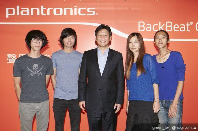 ▲Platronics 大中華區董事總經理 陶海東(中)與創作性樂團 - 熊寶貝分享 BackBeat GO 2。