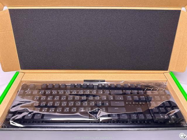 ▼ 掀蓋式的設計,可以看到連上方內部都有泡綿保護, 而且 RAZER BLACKWIDOW V4 PRO 也有用塑料袋包裝。