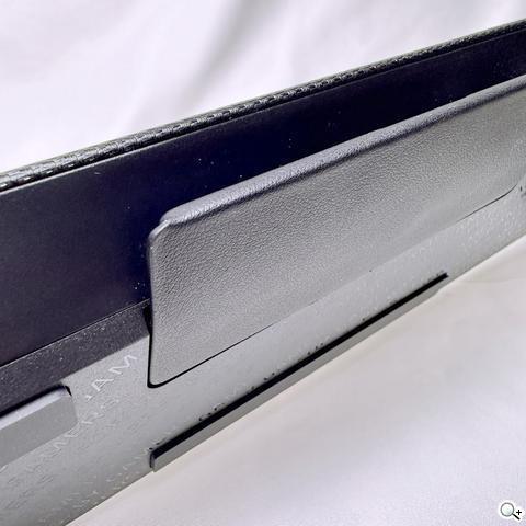 又大又柔軟的 磁吸式護腕墊,就算長時間使用鍵盤雙手也很舒適無負擔,只是鍵盤加上護腕墊其大小確實非常考驗桌面的空間。