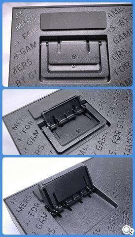▼ 底部的下方 可以看到拿來跟 磁吸式護腕墊 連接的金屬接點