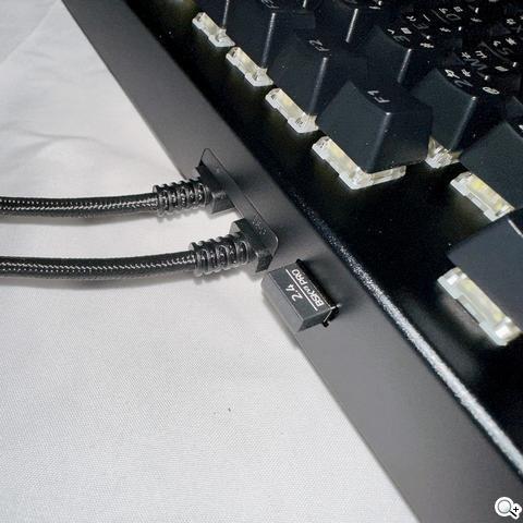 ▼ 兩條傳輸線都給它連接上鍵盤,USB連接埠 則是拿來接正在使用中的 Razer Basilisk V3 Pro 滑鼠 2.4G無線傳輸器。