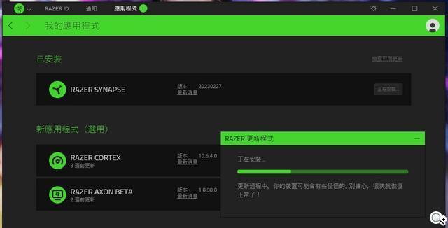 ▼ 才剛接上電腦,Razer Synapse 立馬就跳出更新通知,當然是一定要更新的。
