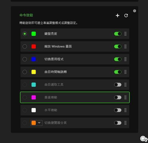 ▼ RAZER 命令旋鈕 自訂界面,其實預設的幾個功能就很實用。