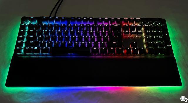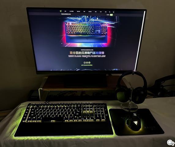 ▼ 有著鍵盤本身的雙邊底光 加上 護腕墊上的三邊底光,真是有著更全面、更沉浸的燈效。(此時更覺得 護腕墊的雷蛇LOGO 應該要做發光)