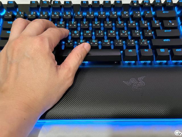 ▼ 結合完成的 RAZER BLACKWIDOW V4 PRO,實體比較之下才發現 磁吸式護腕墊 真的是很大。