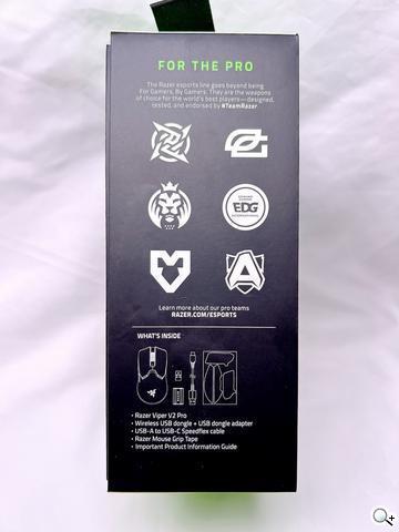 ▼ 盒裝左側有著諸多愛用雷蛇產品的電競戰隊LOGO,下方則是盒裝內容物的圖示。