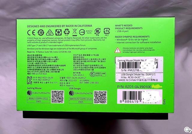 ▼ 盒裝底部則是一堆安規認證,中文名稱蠻酷的 雷蛇 毒蝰 V2 專業版。