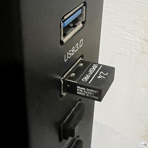▼ 因為電腦主機就在旁邊,不怕訊號不好,所以直接把 2.4GHz HyperSpeed 接收器 插在主機上。