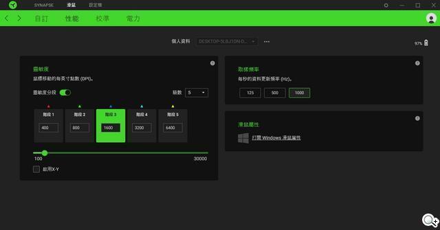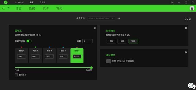 ▼ 再按壓切換DPI,可以看到已經照之前設定的數值切換。(DPI 30000 真的太高了,一般 DPI 3200 就很夠了。)