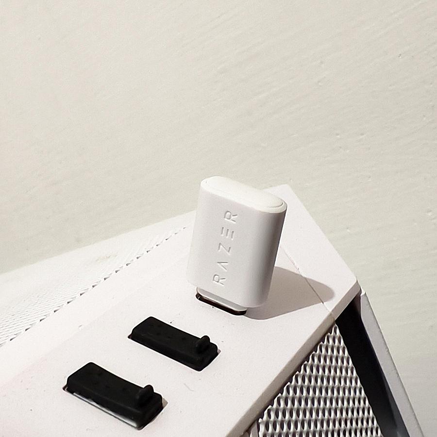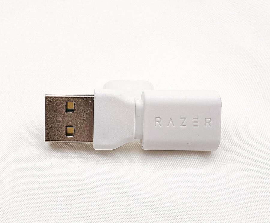 ▼ 都有著保護套的 Type C Razer HyperSpeed Wireless Dongle、USB-A 公對 USB-C 母轉接器,接頭處則是雷蛇標配的綠色。