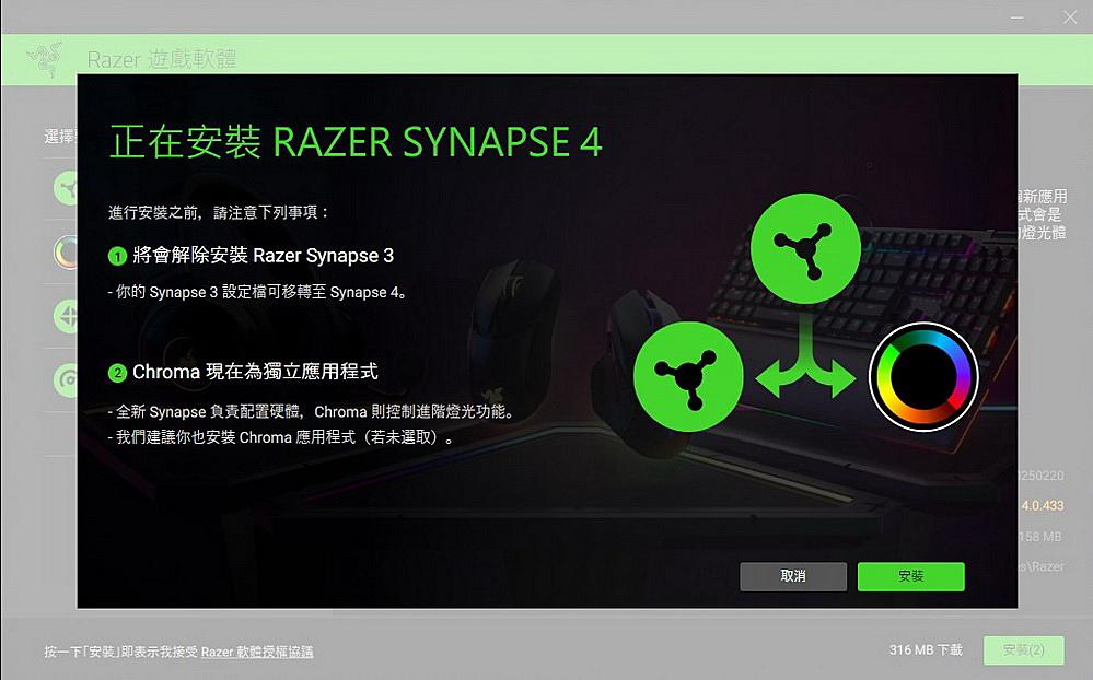 ▼ 就算有舊版本的 Razer Synapse 3,也會自動移除並升級至 Razer Synapse 4。