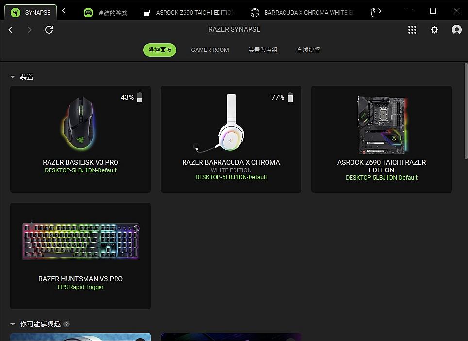 ▼ 開啟 Razer Synapse 4,會圖示所有使用中的 雷蛇產品。