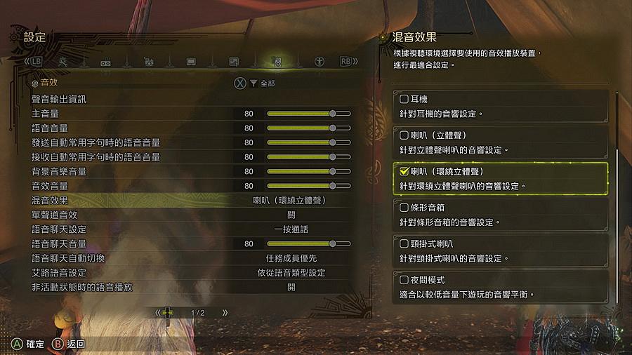 ▼ 在遊戲中的音效設定,將它設定為 環繞立體聲。