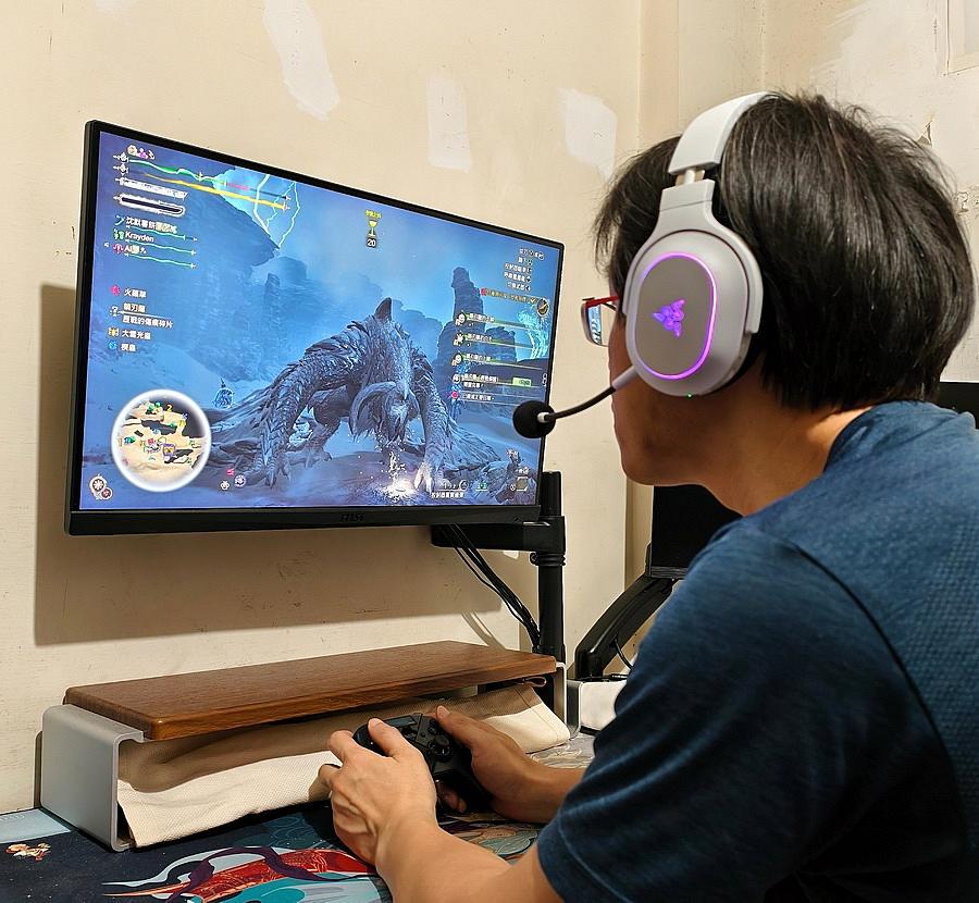 ▼ 在廣大的遊戲世界中,可不是只有要狩獵的魔物,常常會有其它魔物從不同方向亂入,經由 Barracuda X Chroma 都能清晰的聽聲辨位;組隊時隊友的武器攻擊音效也是扛扛的,尤其是「龍擊砲」的那聲砲擊,聽起來實在是有震憾。